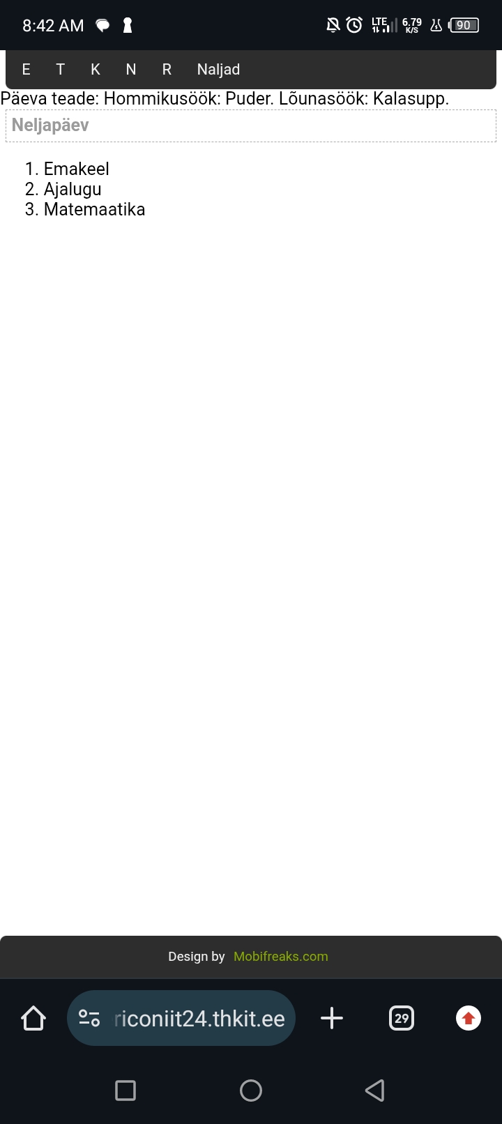Selle vahele tuleb päeva nimetus h2 Neljapäev /h2 ning ained mis sel päeval on nt: li Emakeel /li