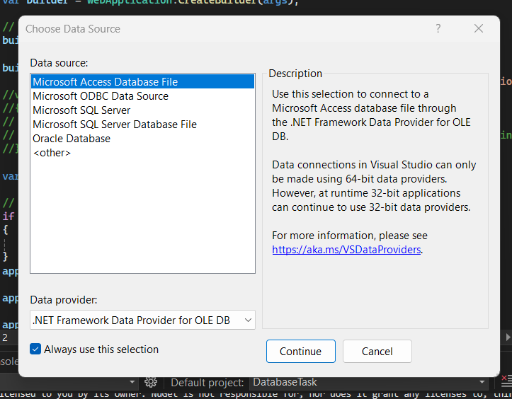 ning DatabaseTask.Data all on Migrations kaust ja DatabaseTaskDbContext.cs mis tuleb ära kustutada