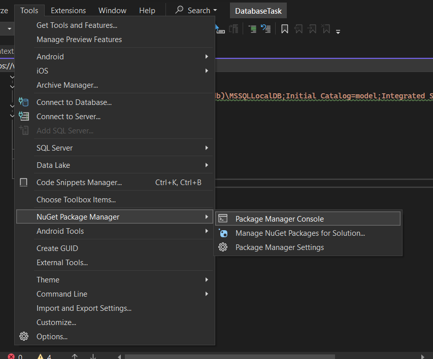 Palun lähtuda minu käsklusest mida mina panin Package Manager Console